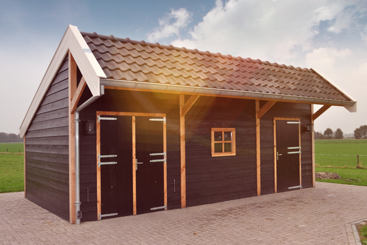 Optional available are the guttering system, Douglas wooden wall, black impregnated wooden walls, sliding walls, doors and windows, roof covering and floor.