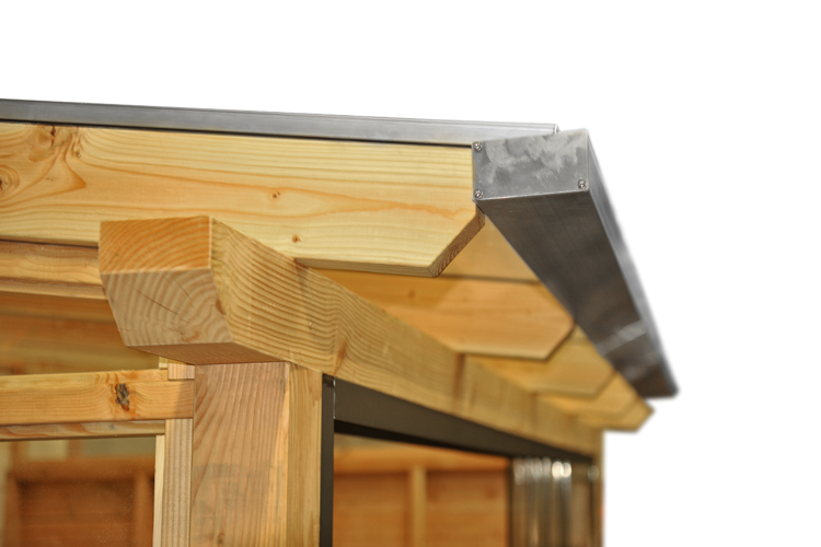 Optional available are the guttering system, Douglas wooden wall, black impregnated walls, sliding walls and floor.