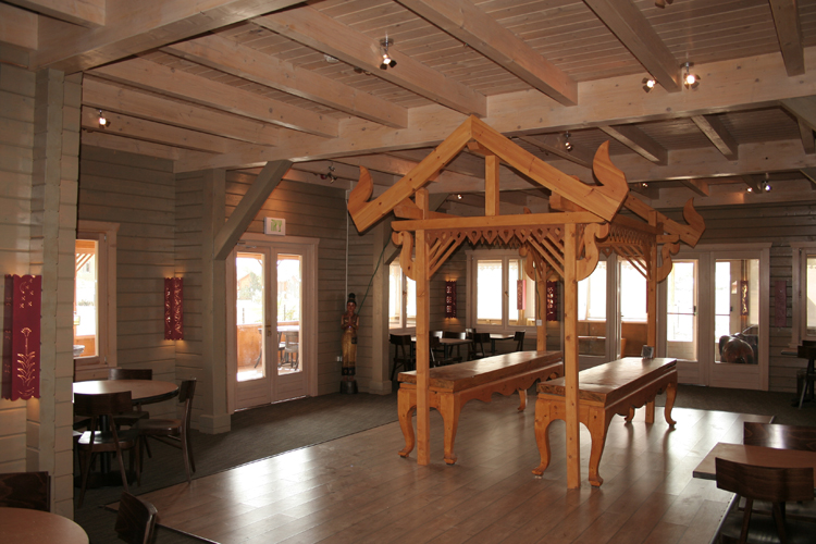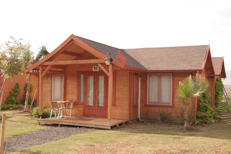 This client has constructed a total village. This project has now about 60 two and four person log cabins, completed with a restaurant that has 4, 60m2 apartments on the second floor. All is constructed in the same Thailand look.